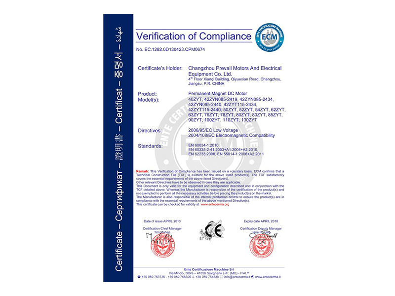 公司有刷電機順利通過CE產品認證